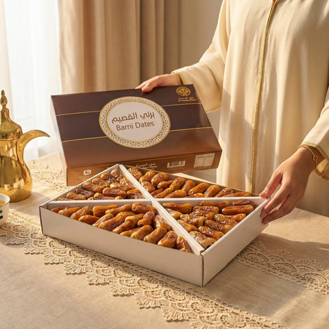 علبة هدايا تمور محشوة بالمكسرات المشكلة وزن 2 كيلو